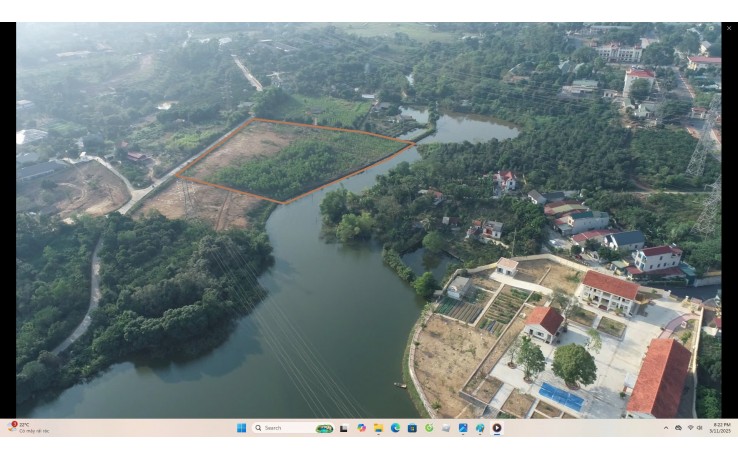 Lô đất bám mặt hồ 201 Xuân Mai: 120 m, bám mặt đường bê tông: 110 m. Khu đất nằm sát thị trấn Xuân Mai, TP Hà Nội.